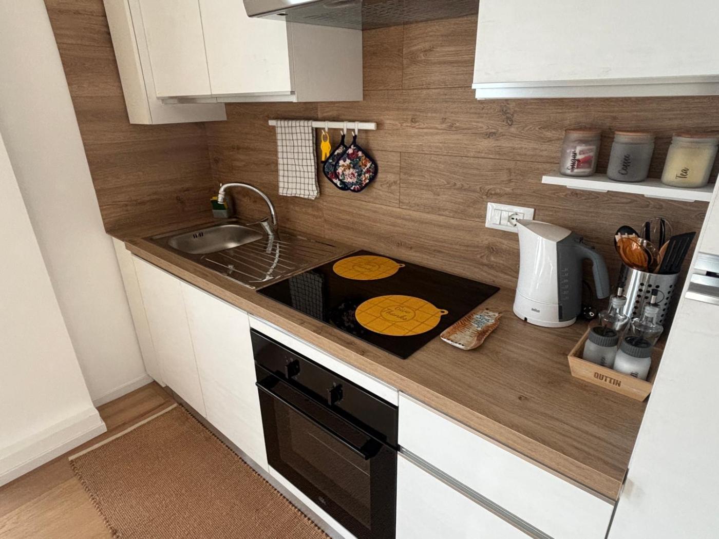 Questo appartamento con aria condizionata comprende 2 camere da letto, un soggiorno, una cucina con utensili, frigorifero e bollitore elettrico, e 1 bagno con bidet e doccia. Presso questo appartamento troverete asciugamani e lenzuola tra i servizi disponibili.