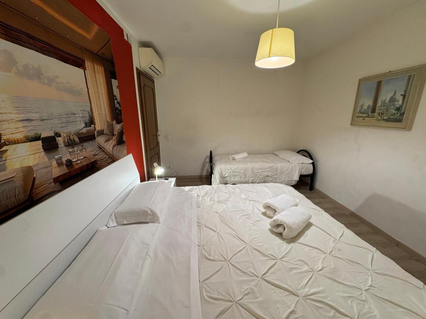 Camera Tripla. The triple room provides air conditioning, a wardrobe, as well as a shared bathroom featuring a shower and a bidet. The triple room features heating and city views. The unit offers 2 beds. ;